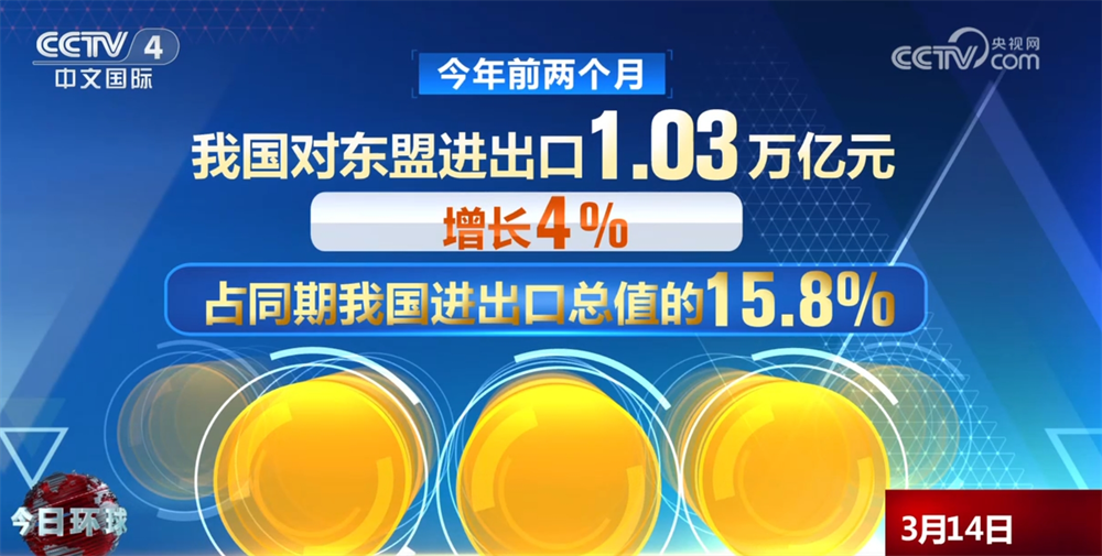 截至客岁,东盟已持续5年连结中国第一大商业伙伴地位。本年前两个月,东盟取中国货色商业进出口延续了这一趋向,继续连结中国第一大商业伙伴地位。据海关统计,本年前两个月,我国对东盟进出口1。03万亿元,增加4%,