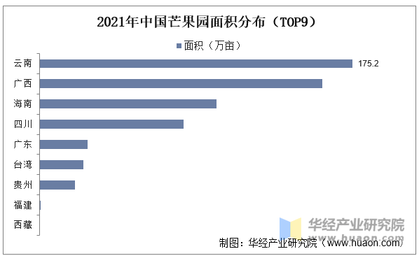 中国芒果产区次要分布正在云南、广西、海南、四川、广东、、贵州等地,此中,云南、广西、海南以及四川产区的芒果园面积较着跨越其他产区。2021年云南、广西、海南以及四川产区芒果园面积别离为175。2万亩、99。3万亩、80。7万亩,正在全国芒果园面积中所占的比沉顺次为29。87%、27。01%、16。93%、13。76%。